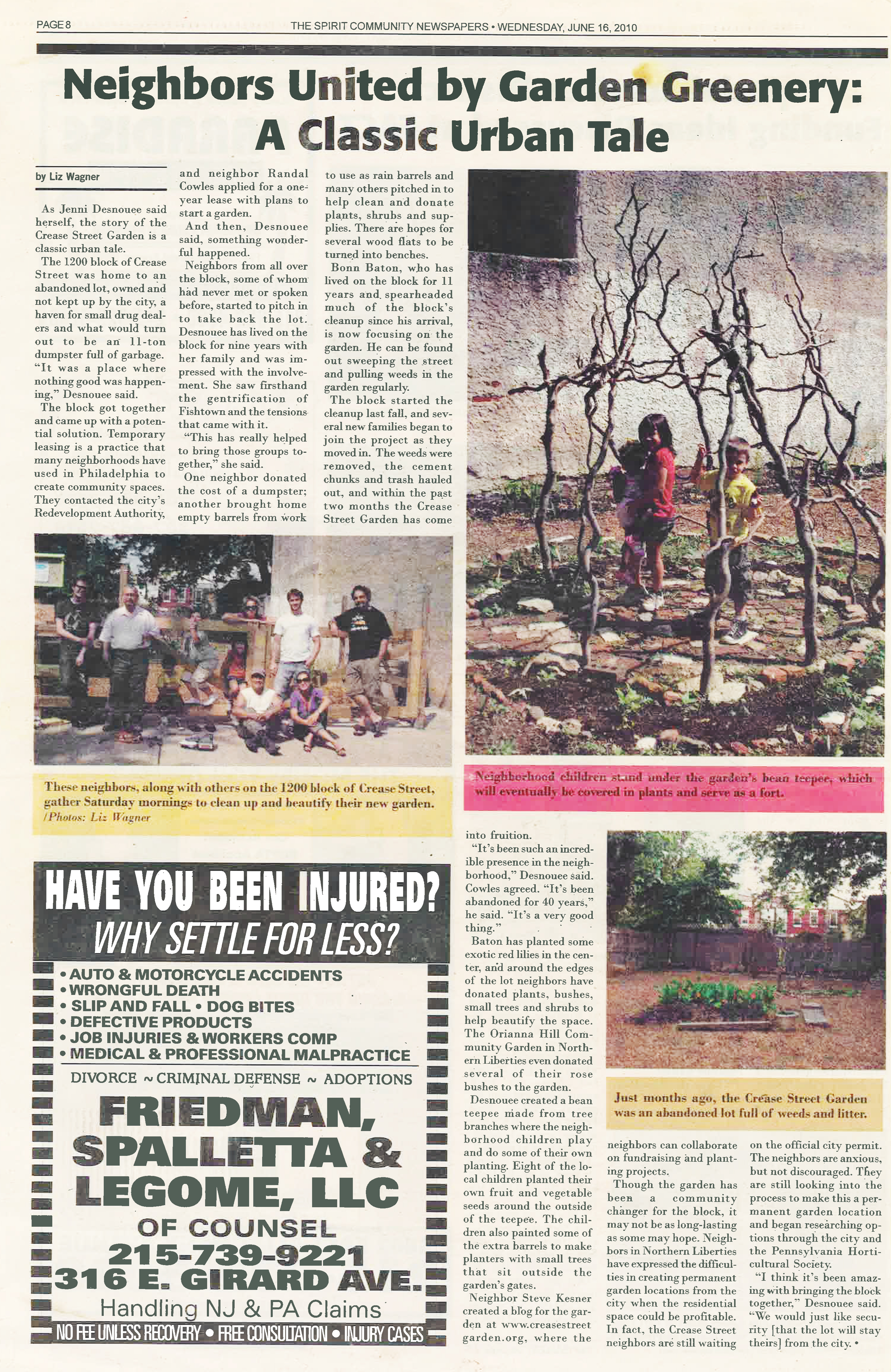 In 2009 – through 2010, the police having successfully addressed the drug trafficker, the residents of the 1200 block of Crease organized to clean-up the lots, accomplishing the following: